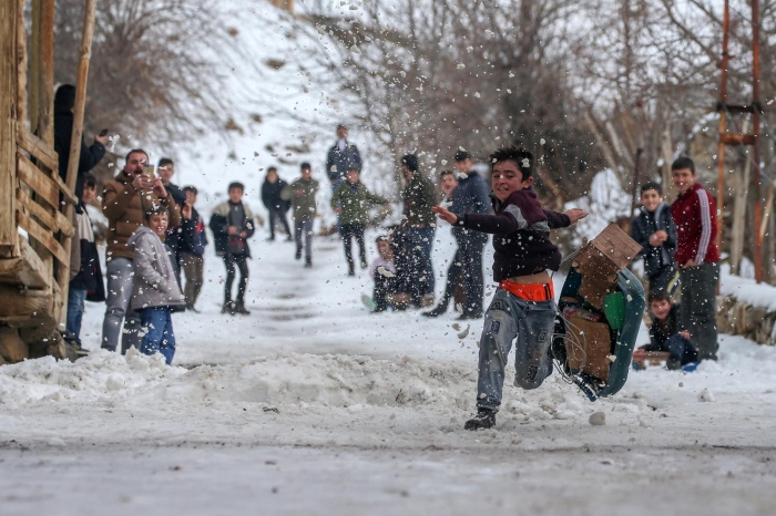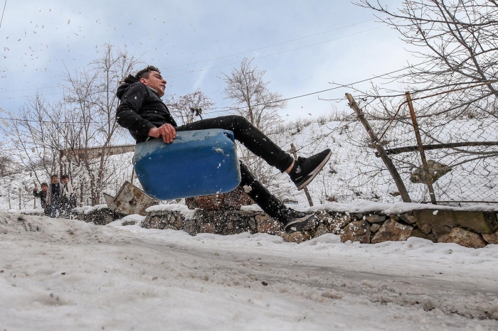 Özcan Ereğli ise arkadaşlarıyla toplanarak ilçedeki tepelere ve buzlanan yollara çıktıklarını, kızaklar ya da plastik bidonlarla kayarak eğlendiklerini söyledi.