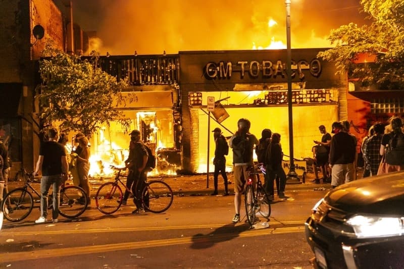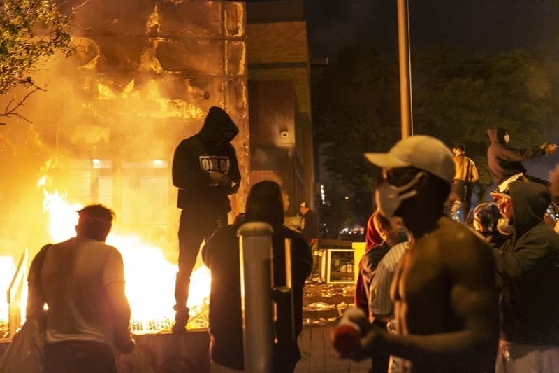 Dün alışveriş merkezlerinin ve marketlerin yağmalandığı kentte, protestocular bu kez George Floyd’un ölümüne neden olan polisin görev yaptığı Minneapolis Polis Merkezine girerek binayı ateşe verdi.