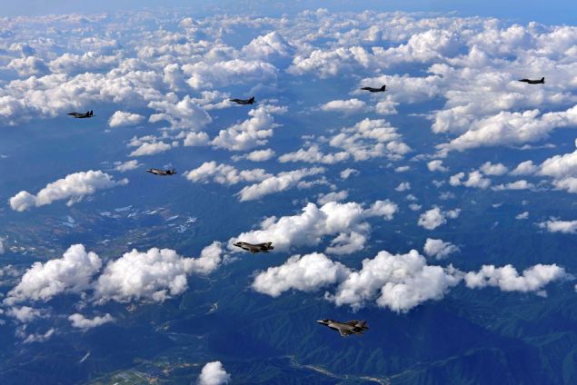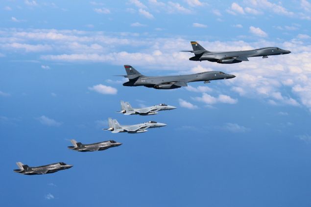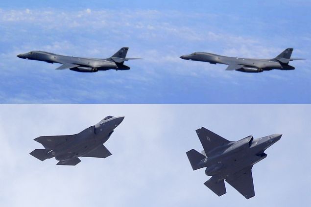 İki adet B-1B bombardıman uçağı, dört F-15 savaş uçağı ve dört F-35B savaş uçağının Kore yarımadası üzerinde uçuş yaparken, uçakların seyir anında bomba yüklü oldukları belirtildi.