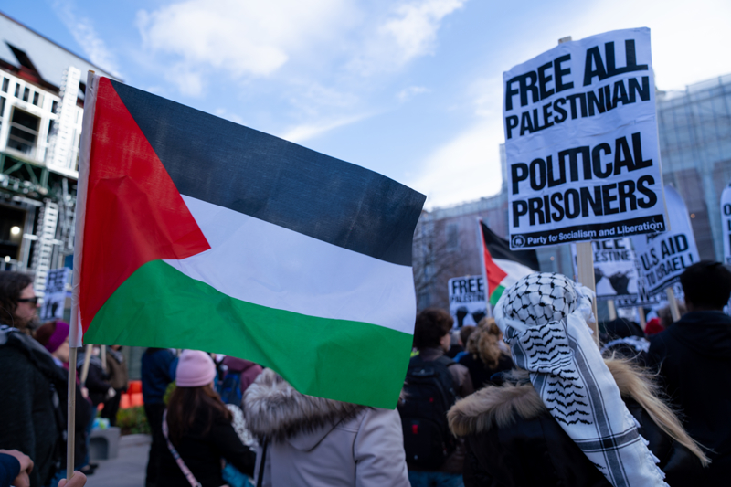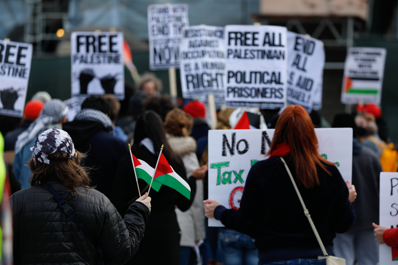 Pankartlar ve Filistin bayrakları taşıyan göstericiler İsrail'in Gazze'ye yönelik saldırılarını protesto etti.