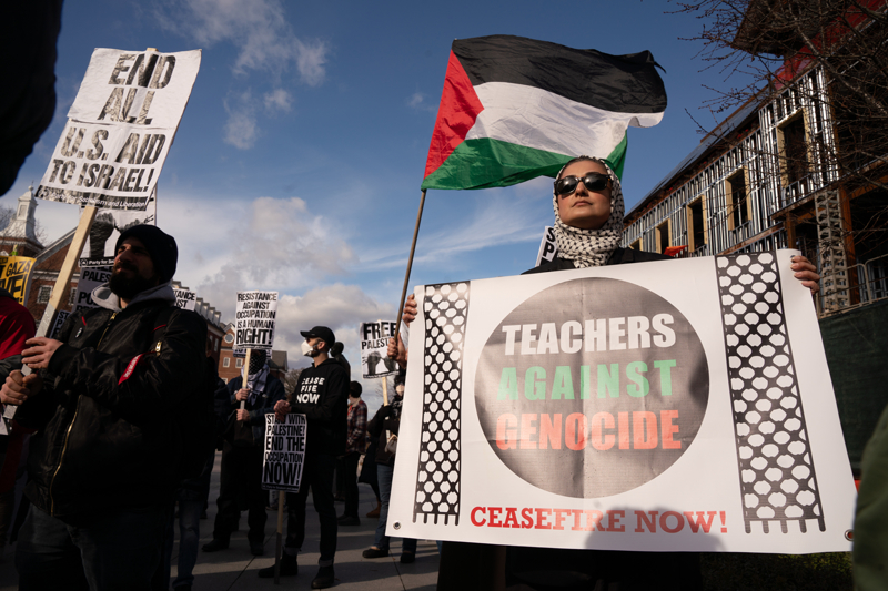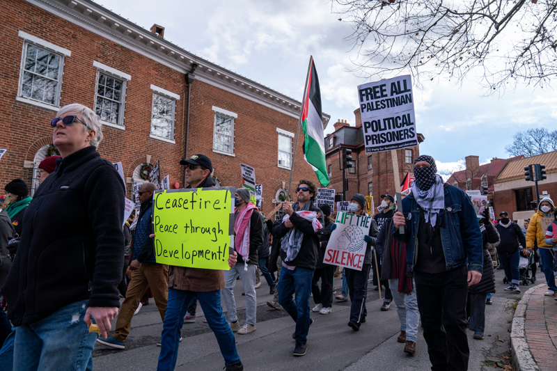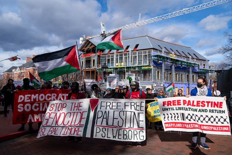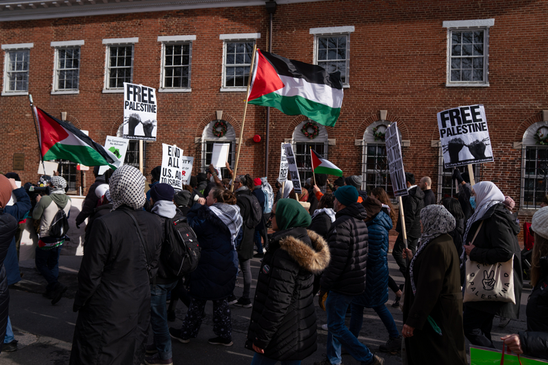 ABD'nin Maryland eyaletinin başkenti Annapolis kentinde bulunan Kongre Binası önünde Filistin'e destek gösterisi düzenlendi.