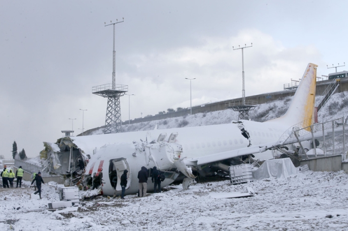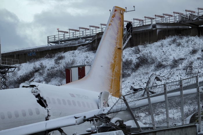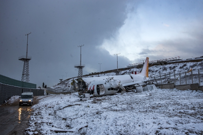 Pegasus Hava Yollarının PC2193 sayılı İzmir-İstanbul seferini yapan ve 5 Şubat’ta saat 18.19'da Sabiha Gökçen Havalimanı'na iniş yaptıktan sonra pistten çıkan Boeing 373 tipi yolcu uçağı enkaz alanındaki çalışmalar devam ediyor.