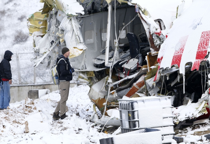 ABD'den gelen heyet kaza yapan uçağın enkazını inceledi