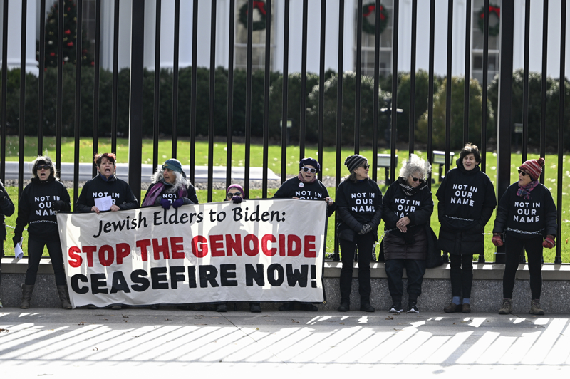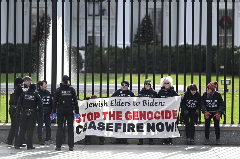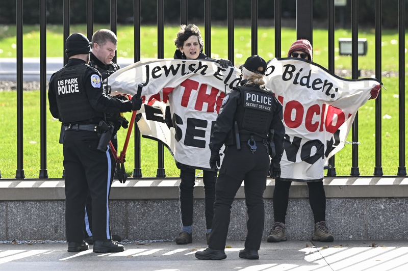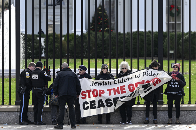 Barış İçin Yahudi Sesi'nin (JVP) sosyal medya platformu X hesabından yapılan açıklamada, Biden'ın Beyaz Saray'da düzenleyeceği Yahudilerce kutsal Hanuka (Işıklar) Bayramı Partisi öncesi kendilerini Beyaz Saray'ın çitlerine zincirleyen 18 göstericinin 'gizli servis' tarafından gözaltına alındığı duyuruldu.