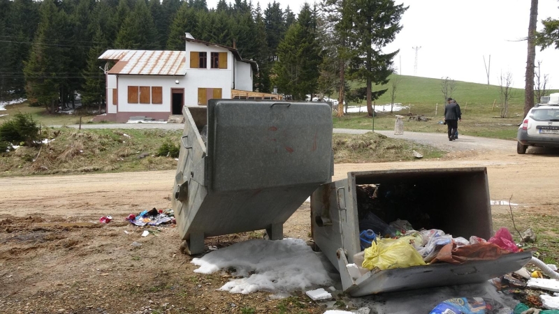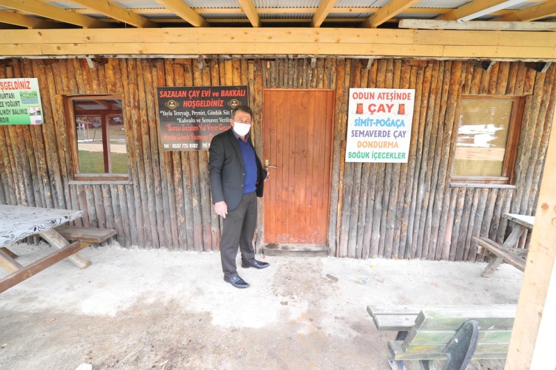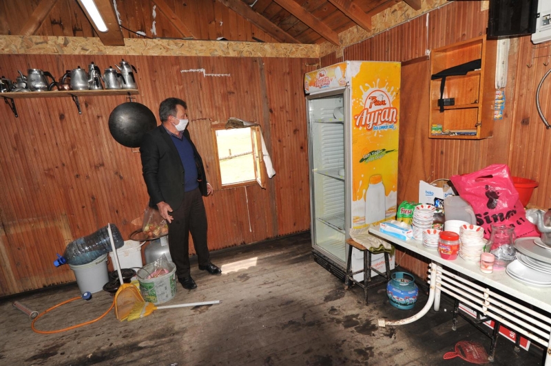 Bahar ve yaz aylarında, ziyaretçilerin ilgi odağı olan ve salgın tedbirleri kapsamında en sakin günlerini yaşayan yaylada çöp konteynerlerini devirerek yiyecek arayan ayı, kapısını kırıp tesisin içine girdi.