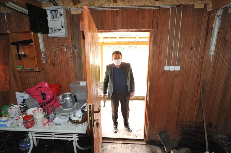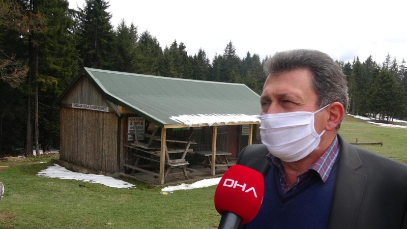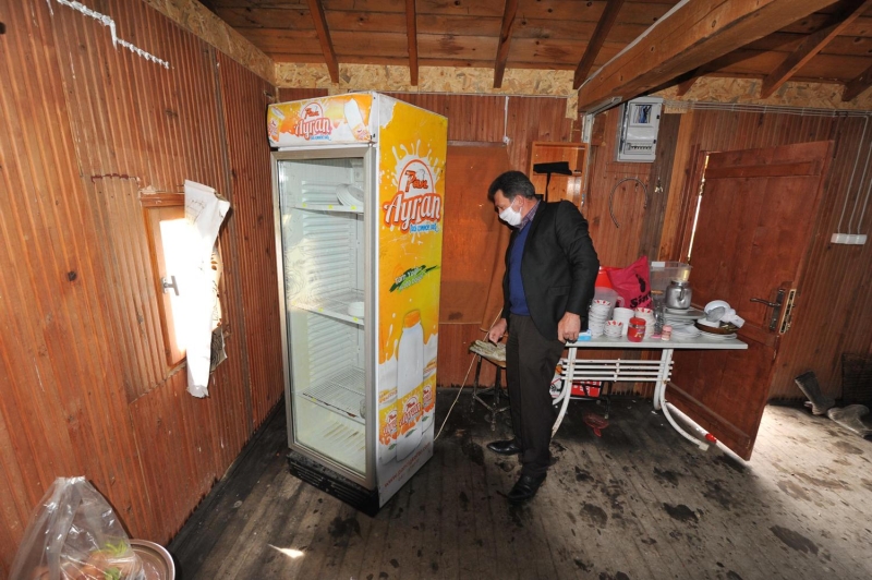 Arslan, 'Koronavirüs nedeniyle şu an işletmemiz kapalı. Bundan dolayı insanlar buraya gelmiyor. Ayılar da aç kaldığı için mesire alanlarına gelip yemek arıyorlar. Bizim işletmemize de misafir olmuş ayı. Kapıyı kırıp içeri girmiş. Fazla bir zararım yok, olsa da önemli değil çünkü çok sevimli bir hayvan onları seviyoruz. İnşallah salgın biter ve işletmelerimizi yeniden açarız. Burada çevredeki evlerden de ayılar yiyecek arıyor, çok izlerine rastladım. Ayılarla bir nevi komşu olarak yaşıyoruz. Sevimli bir hayvan; inanın her zaman gelmesini isterim, yalnız kapıyı kırmadan gelse yiyeceğini veririm. Hatta balık da getiririm ona sorun değil. Onları seviyoruz' dedi.