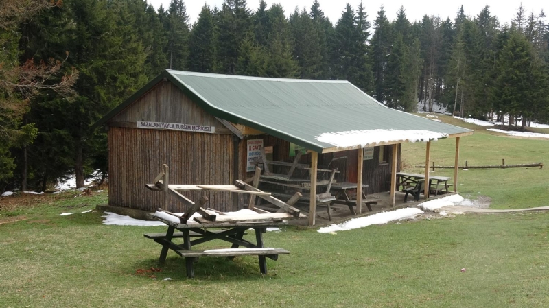 İlçeye 30 kilometre uzaklıkta, denizden 1850 metre yükseklikteki Sazalan Yaylası'nda, kış uykusundan uyanan boz ayı, Cemil Arslan'a ait alabalık tesislerine dadandı.
