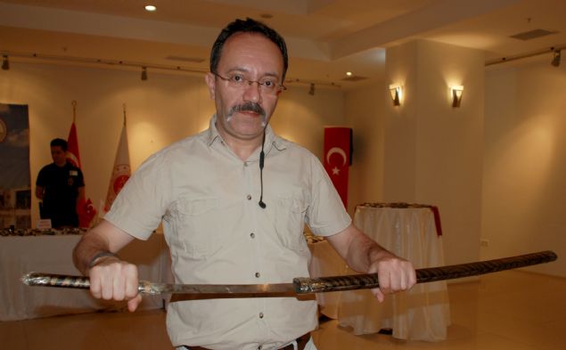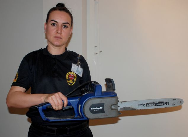 Öte yandan, sergilenen materyaller arasında bulunan 'samuray kılıcı', 'motorlu testere' ile üzerinde 'eğitim şart' yazan sopa ise dikkati çekiyor.
