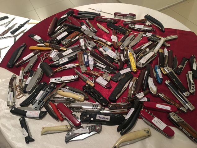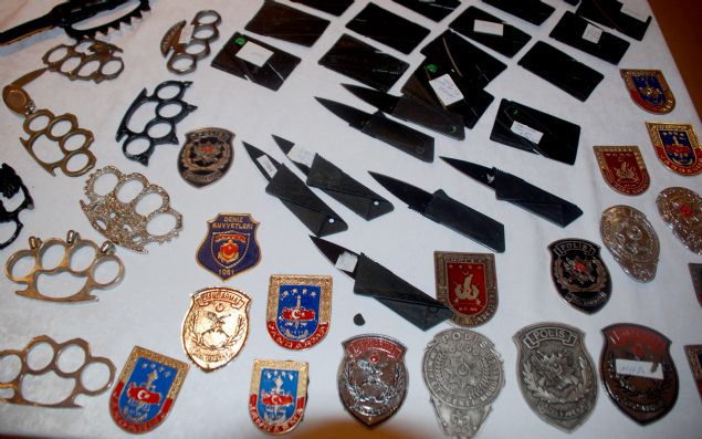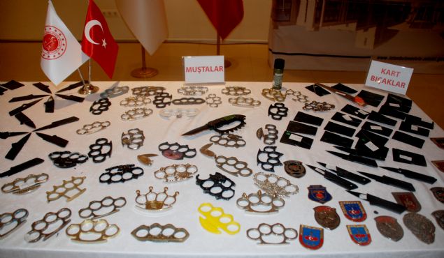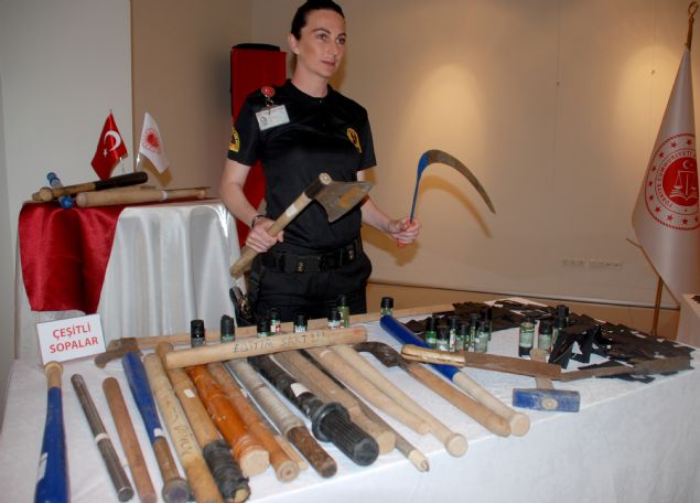 Sergilenenler arasında ekmek bıçağı, çakı, biber gazı, çatal, kaşık, makas, çekiç, balta, keser, satır, muşta, kart, kalem ve anahtar kalem görünümünde bıçak, elektro şok cihazı, sopa, sahte polis, özel harekat ve jandarma rozetleri gibi çok sayıda ilginç suç eşyası bulunuyor.
