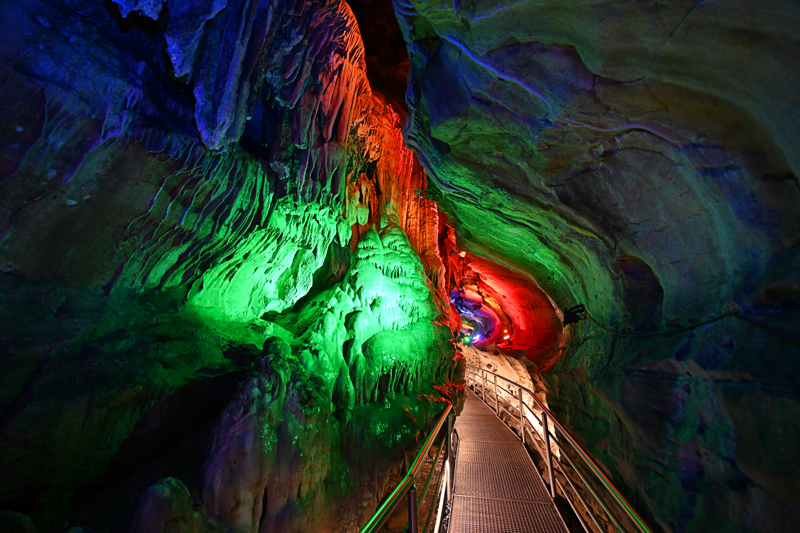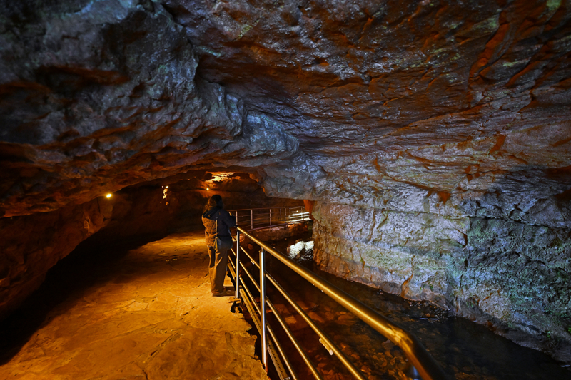 Mağaranın yaklaşık 400 metrelik yürüyüş yolu olan sağ kolundaki göl ve çağlayan ziyaretçilerine etkileyici güzellikler sunuyor.