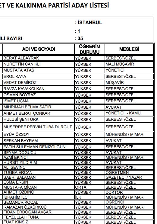 BERAT ALBAYRAK NURETTİN CANİKLİ MUSTAFA ATAŞ EROL KAYA VEDAT DEMİRÖZ RAVZA KAVAKCI KAN OSMAN BOYRAZ İSMET UÇMA MİHRİMAH BELMA SATIR AHMET BERAT ÇONKAR HULUSİ ŞENTÜRK MÜŞERREF PERVİN TUBA DURGUT EYÜP ÖZSOY SERKAN BAYRAM FATİH SÜLEYMAN DENİZOLGUN ŞEYMA DÖĞÜCÜ AZMİ EKİNCİ HURŞİT YILDIRIM ALİ SEVİNÇ TUĞBA ERCAN SABRİ BALAMAN ESMA ERSİN MUSTAFA MİCAN AHMET ÖZDİNÇ İBRAHİM İLCİ SEMANUR KOÇAL RAMAZAN ÖZKÜRKÇÜ FİDAN ERDOĞAN AVŞAR FEYZULLAH TUNA FUAT KİNSİZ AHMET AYHAN KAYAOĞLU SİNEM DEMİR MUHAMMET ALİ KUMRU LEVENT COŞKUN ERKEKOĞLU OKTAY TAN