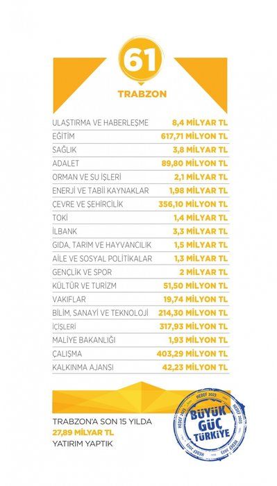 3 Kasım 2002 tarihinden beri Türkiye'de hükümeti kuran parti olan AK Parti döneminde ne kadar yatırım yapıldı? İşte Cumhurbaşkanı Recep Tayyip Erdoğan önderliğinde gerçekleşen il il AK Parti yatırımları...