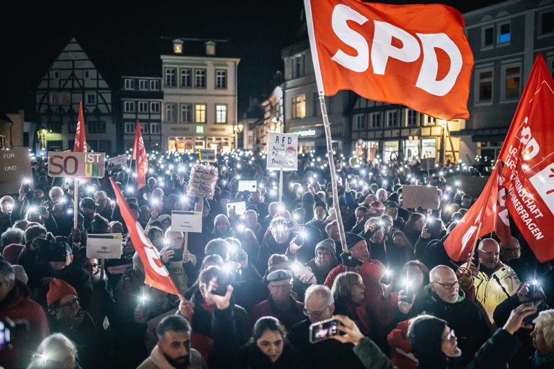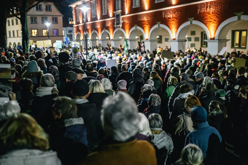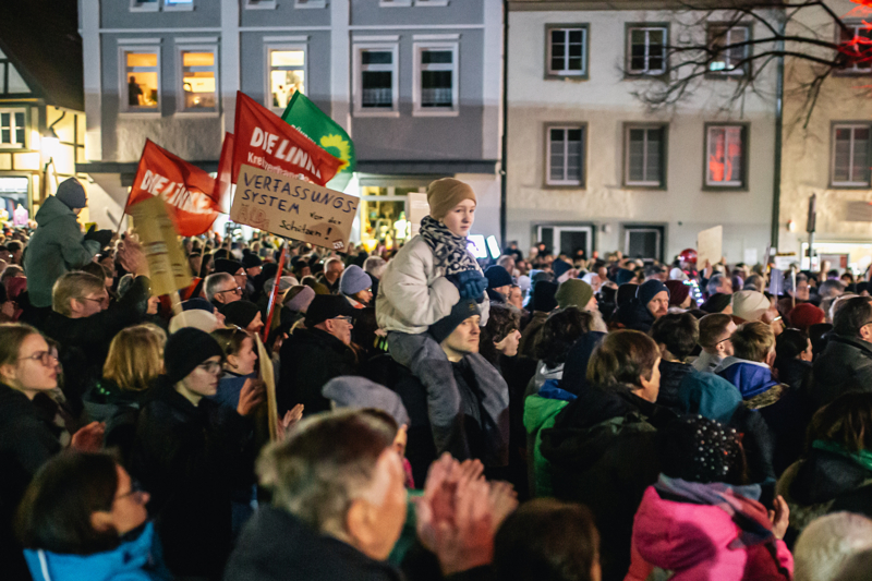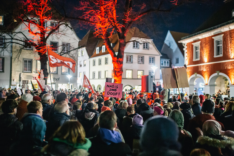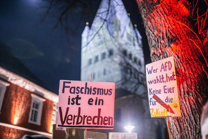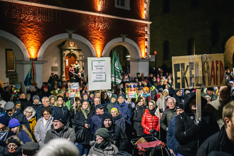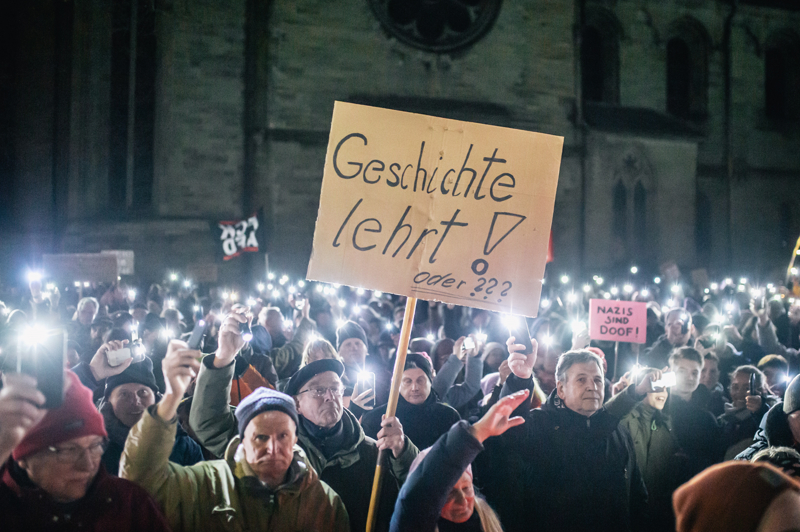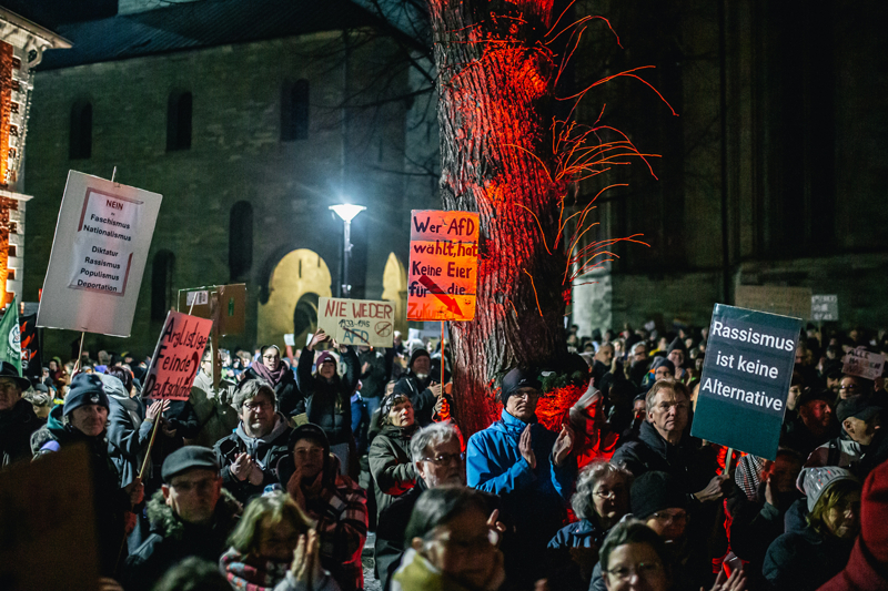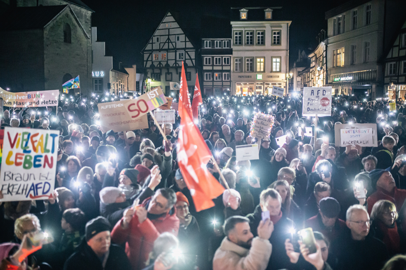 Ellerinde pankartlar taşıyan protestocular, milyonlarca yabancının ülkeden sürülme planını, İslam karşıtlığını, aşırı sağcı popülist Almanya için Alternatif (AfD) Partisini protesto etti.