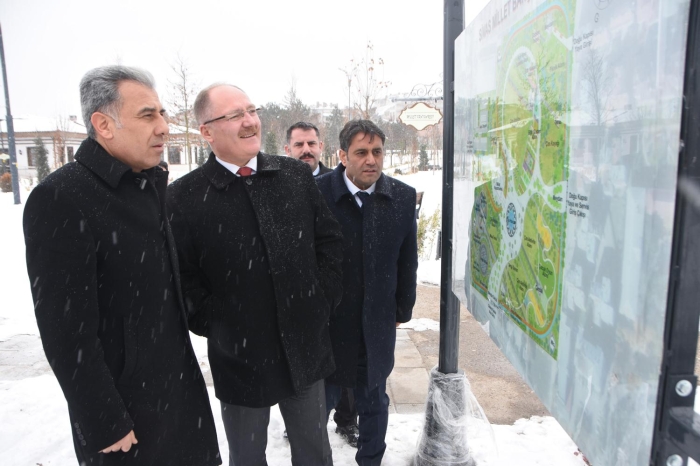 Alanı süsleyecek ağaçların taşındığı, içindeki yapıların tamamlandığı ve çevre duvarlarının tamamlandığı projede kış şartlarına rağmen çalışmalara ara verilmedi.