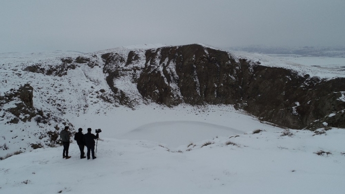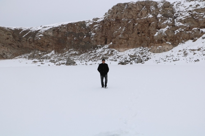 Göl, bulunduğu bölgede sıcaklığının eksi 25 dereceye kadar düşmesiyle tamamen buz tuttu, buz tutan gölün yüzeyi ise karla kaplandı.