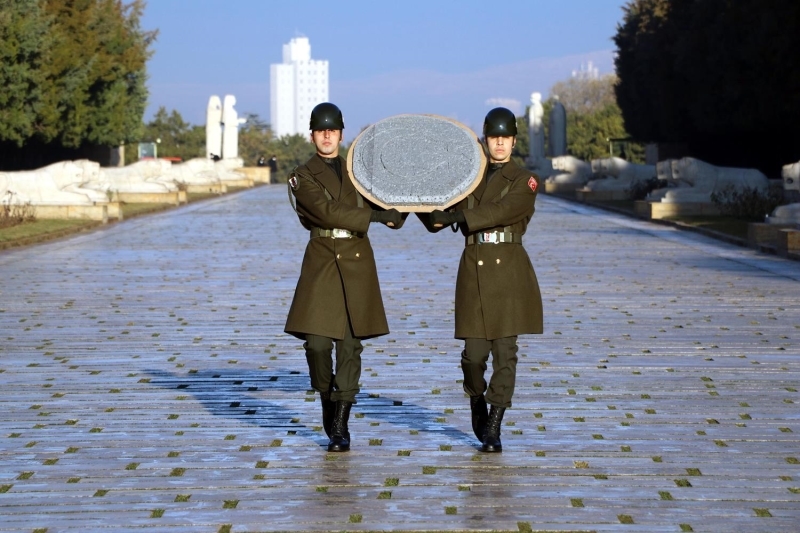 Askerler, 1 saatlik nöbetleri boyunca hareket etmeden duruyor. Anıtkabir'i ziyaret edenler, heykel gibi duran askerleri ilgiyle izlerken, yanlarında hatıra fotoğrafı çektiriyor. Askerlerin nöbet değişimleri de yerli ve yabancı ziyaretçilerin yoğun ilgisini görüyor.