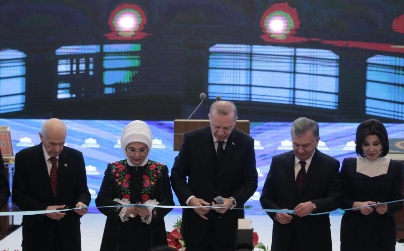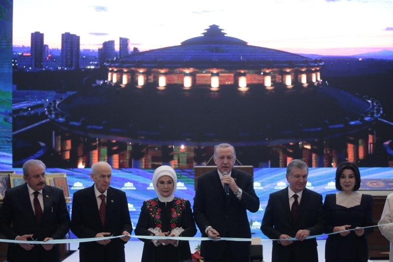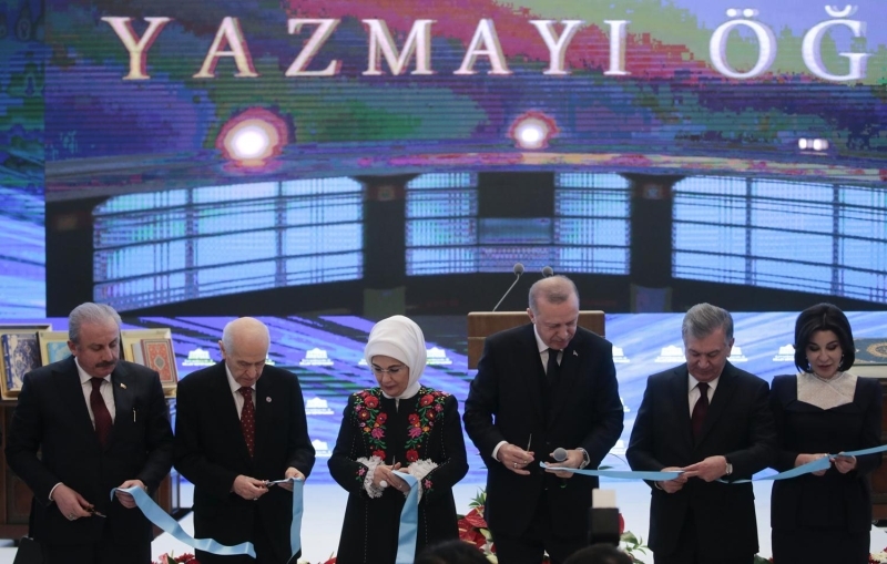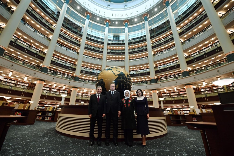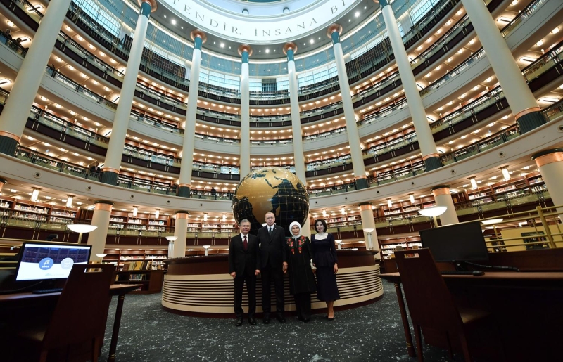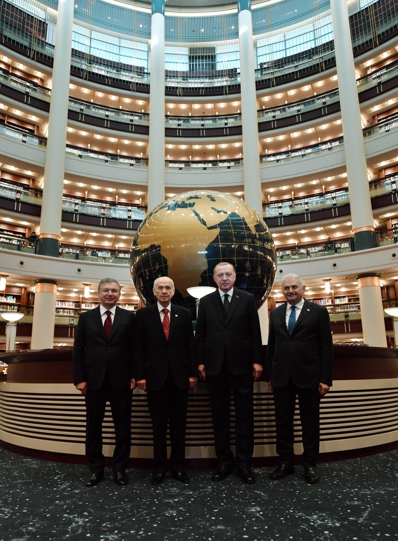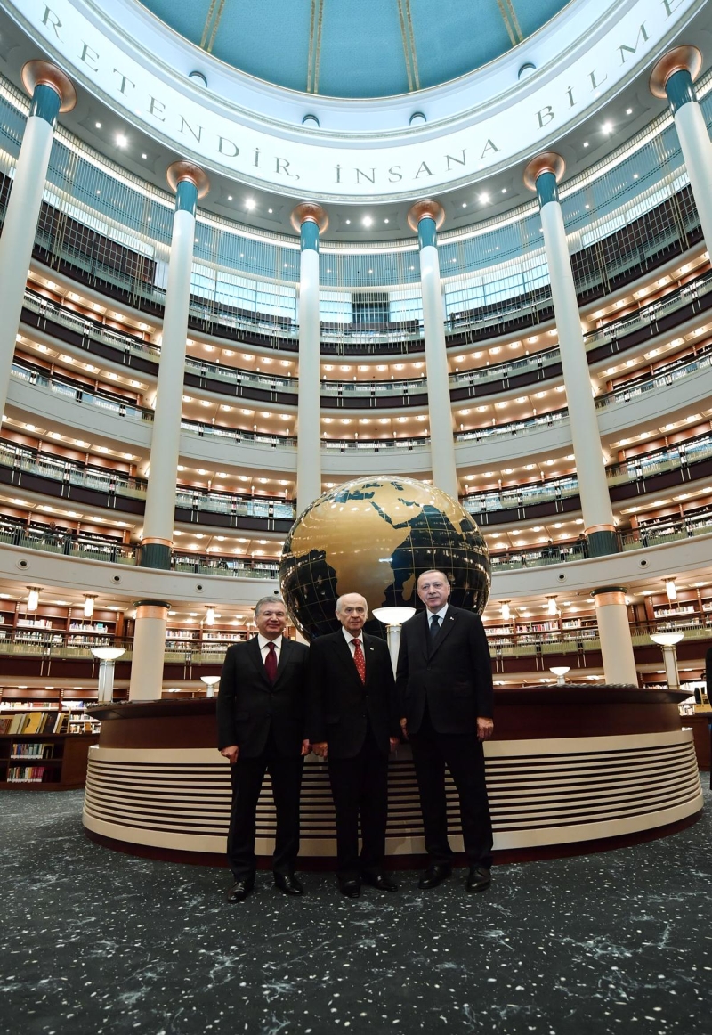 Cumhurbaşkanı Erdoğan, açılışın ardından Özbekistan Cumhurbaşkanı Mirziyoyev, MHP Genel Başkanı Devlet Bahçeli ve AK Parti İzmir Milletvekili Binali Yıldırım ile kütüphaneyi gezdi.