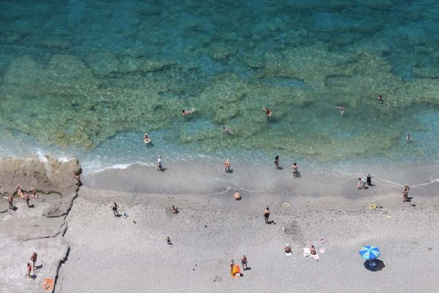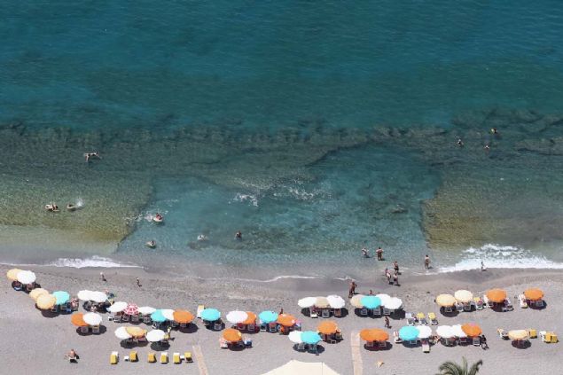 Yerli ve yabancı turistler, dünyaca ünlü Konyaaltı Sahili'nden denize girdi, kumsalda güneşlendi.