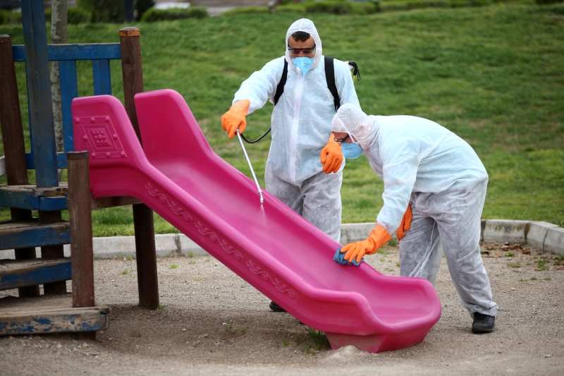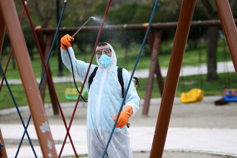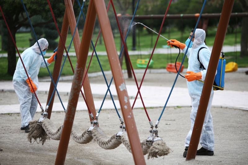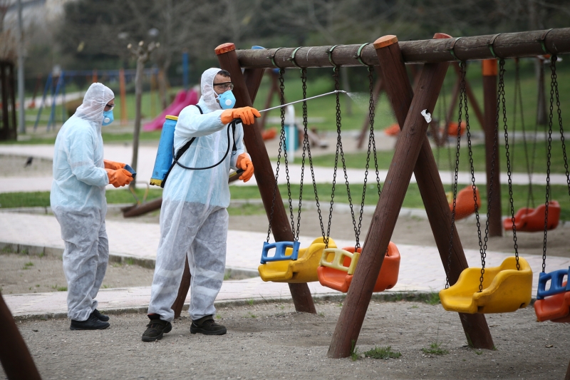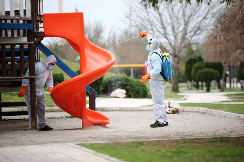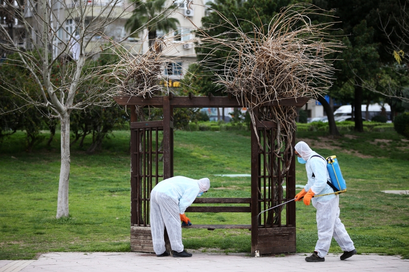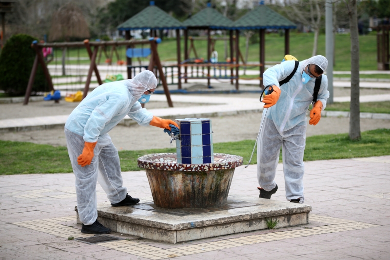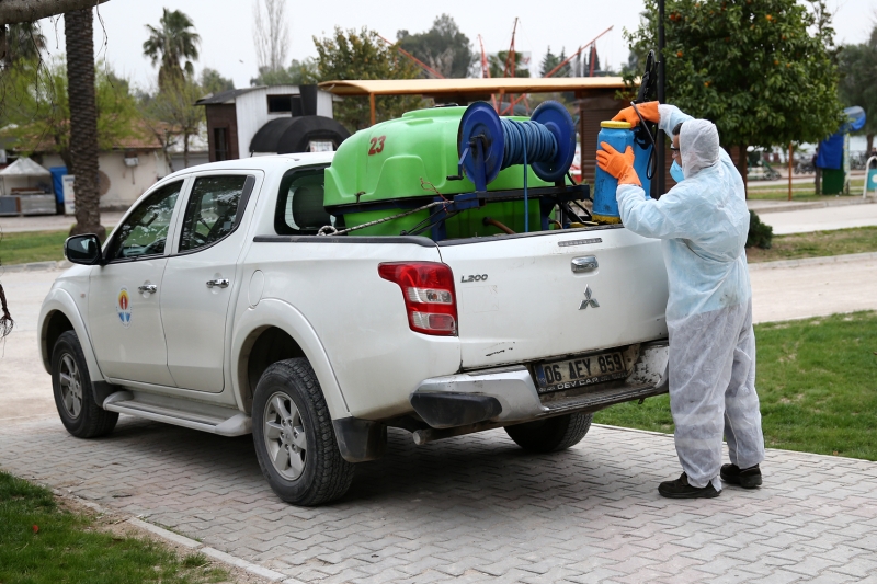Okulların tatil edilmesinden spor müsabakalarının seyircisiz oynanmasına kadar geniş bir şekilde alınan tedbirlerin yanında belediyeler bünyesindeki ekipler, halkın yoğun kullandığı alanların dezenfeksiyonuna büyük önem veriyor.