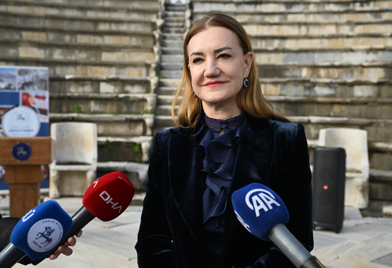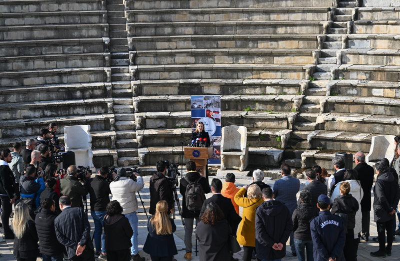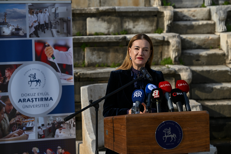 İzmir'in Torbalı ilçesindeki Metropolis Antik Kenti'ndeki kazı çalışmaları, Dokuz Eylül Üniversitesi (DEÜ) Rektörü Prof. Dr. Nükhet Hotar ve Metropolis Antik Kenti Kazı Heyeti Başkanı Prof. Dr. Serdar Aybek'in katıldığı etkinlikle tanıtıldı.