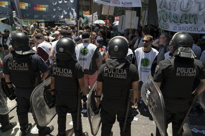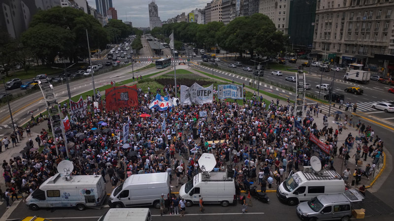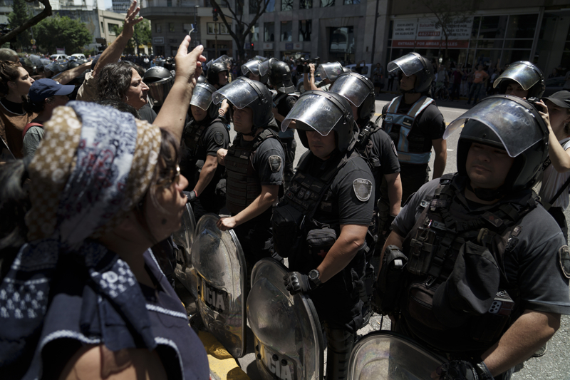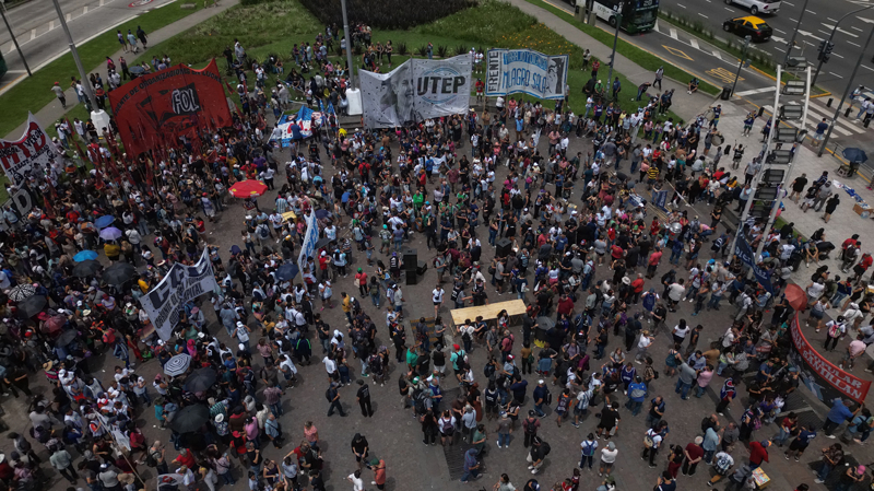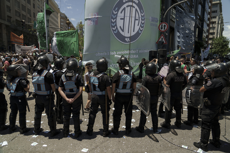 Arjantin'in başkenti Buenos Aires'te, yeni seçilen Javier Milei hükümetine karşı protestolar sürüyor. Noel kutlamaları öncesinde bir araya gelen binlerce işçi, Başkan Milei'nin uyguladığı yeni politikaları, artan temel gıda fiyatlarına, durdurulamayan enflasyona ve giderek artan yoksulluk oranını protesto etmek üzere sokaklara döküldü.