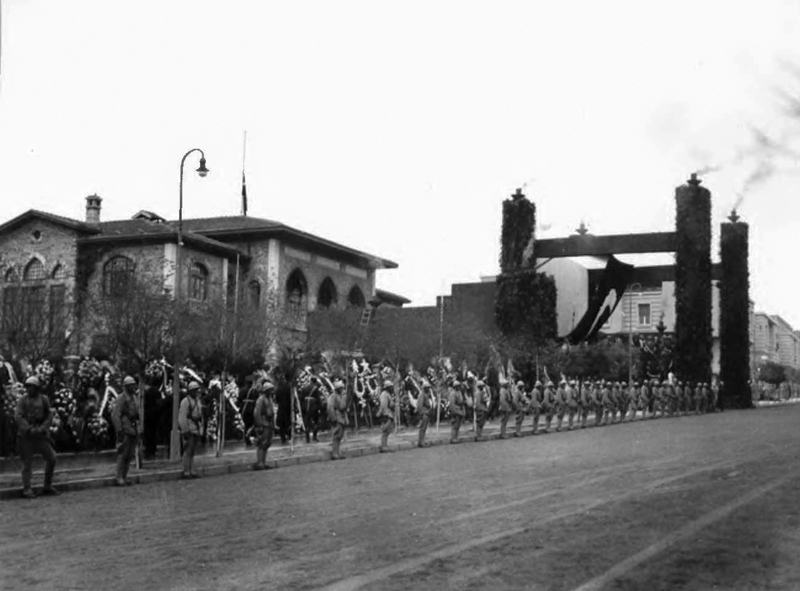 Türkiye Cumhuriyeti'nin kurucusu Mustafa Kemal Atatürk'ün naaşının Ankara ve İstanbul'da düzenlenen resmi törenlerle sonsuzluğa uğurlanmasından Etnografya Müzesi'ndeki geçici kabrine nakledilmesine kadar geçen süreyi kapsayan fotoğraflar, bir ulusun önderine duyduğu bağlılığı ve hüznü gözler önüne seriyor. Atatürk'ün cenazesi 19 Kasım 1938 günü Dolmabahçe Sarayı'ndan ayrıldı.