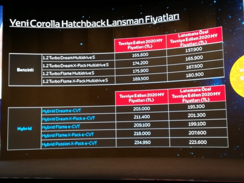 Toyota'nın Corolla Hatcback'i İstanbul'da tanıtıldı. İşte 2020 Corolla Hatcback'in lansman fiyatları 157.900 TL'den başlıyor. Detaylar Star.com.tr'de olacak.