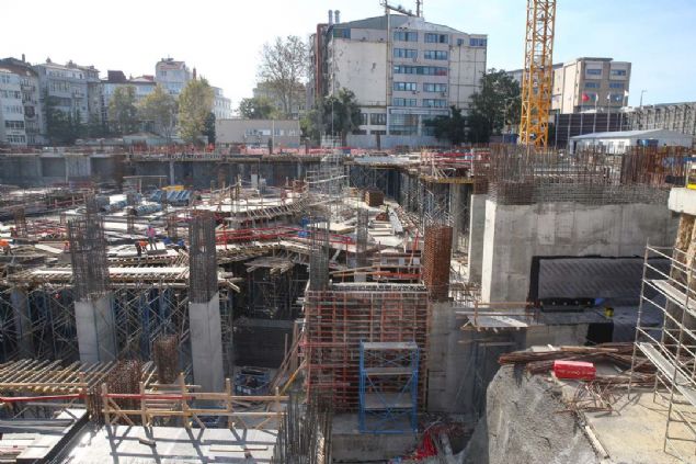 Temeli Cumhurbaşkanı Recep Tayyip Erdoğan'ın katılımıyla 10 Şubat'ta atılan yeni Atatürk Kültür Merkezinin (AKM) yapımı devam ediyor.