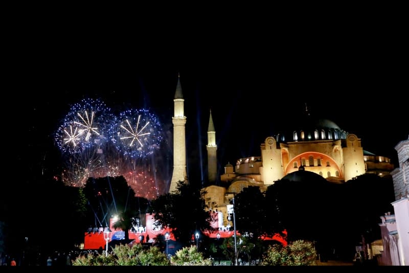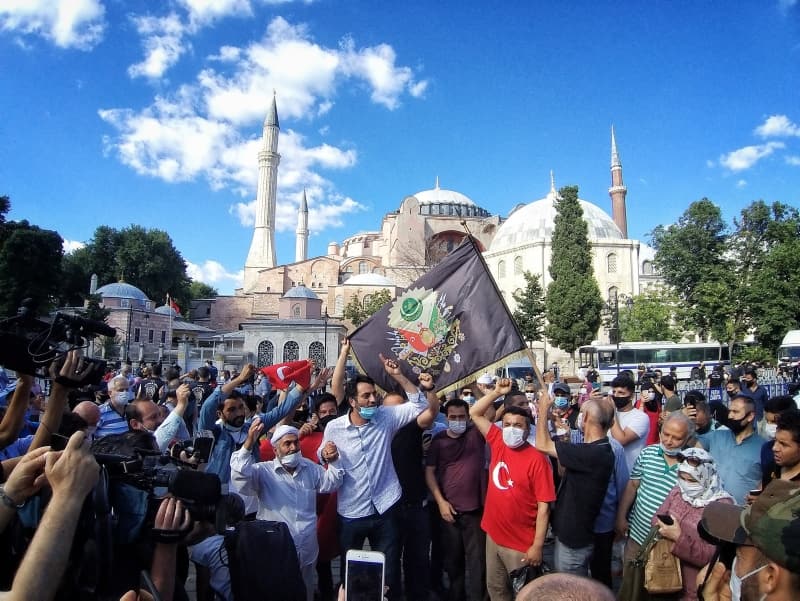 Diyanet İşleri Başkanlığı'na devredilen Ayasofya'da 86 yıl sonra cemaatle ilk namaz 24 Temmuz Cuma günü kılınacak. Ayasofya içerisinde hazırlık çalışmaları sürerken, dışarıda da güvenlik önlemleri artırıldı. Sultanahmet Meydanı'na girişler çelik bariyerlerle kapatıldı. Vatandaşların girişi ise polis kontrolü ile yapılıyor. Camii içerindeki bahçe için çimlerin getirildiği görüldü. Öte yandan hem ulusal hem de uluslararası basının ilgisinin yoğun olması sebebiyle açılış için Ayasofya Camii önüne basın platformu kuruluyor.