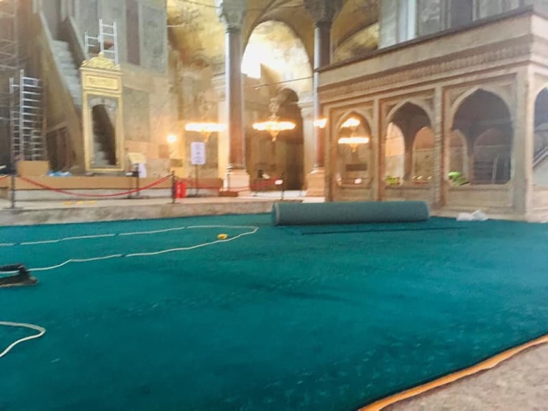 İşte Ayasofya Camii'nin cuma namazı için hazırlandığı görüntüler...