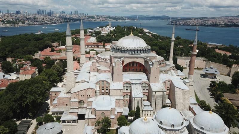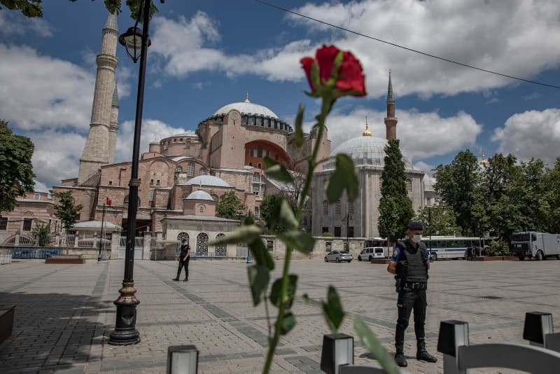 Ayasofya'da 24 Temmuz'da kılınacak ilk Cuma namazı için hazırlıklar sürüyor. Açılışa günler kala Ayasofya çevresinde yoğun güvenlik önlemleri alınırken, camii içerisindeki bahçe için çim getirildiği görüldü. Öte yandan hazırlıklar kapsamında Ayasofya önüne basın mensupları için platform kurulmaya başlandı.