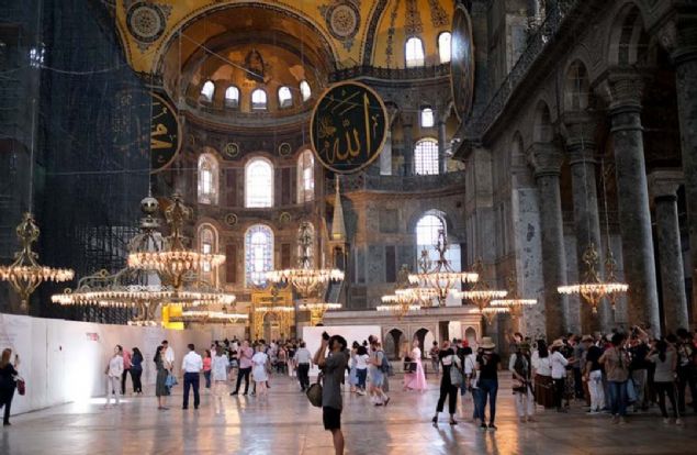 Yüzlerce kişinin dev iskelede ya da mermer zemin üzerinde hummalı bir çalışmanın devam ettiği tarihi yapı santim santim yenileniyor.