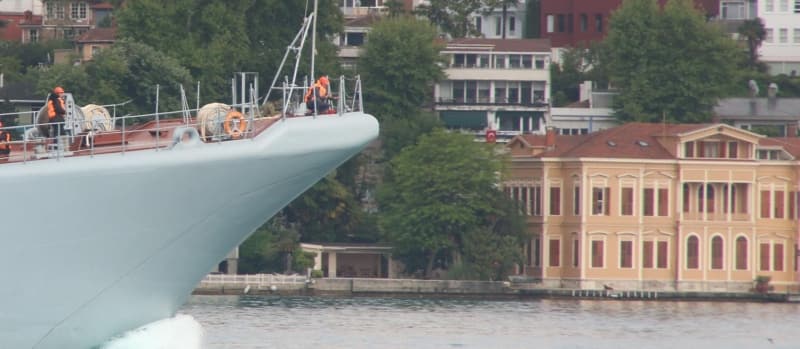 aklaşık 1 saatte Fatih Sultan Mehmet Köprüsü altına ulaşan geminin güvertesinde çok sayıda askerin olduğu görüldü. Gemideki bazı askerler kıyının fotoğrafını çekerken bazı ise boğazı seyretti.