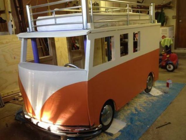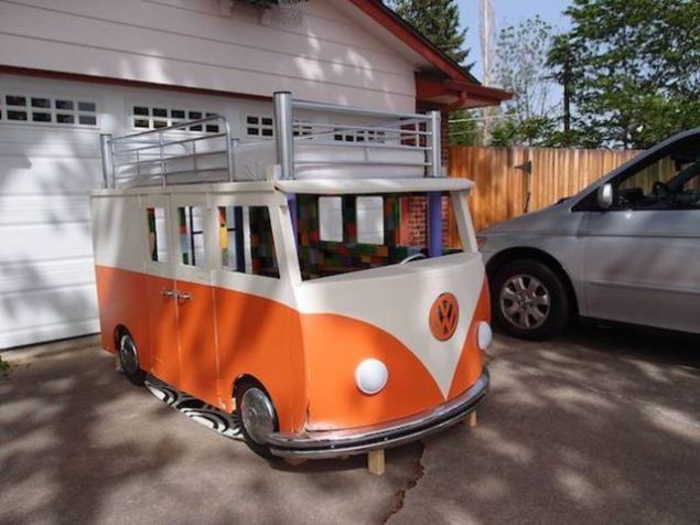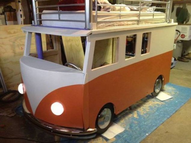 Yeni bir yatağa ihtiyacı olan kızı için işe koyulan baba, 60 ve 70'li yıllarda efsane haline gelen Volkswagen Type 2'ye benzer bir yatak yaptı.