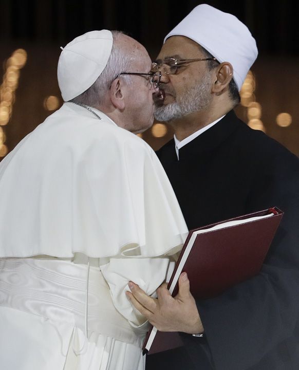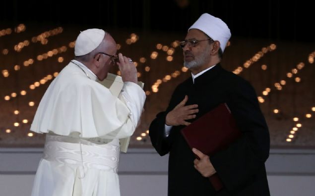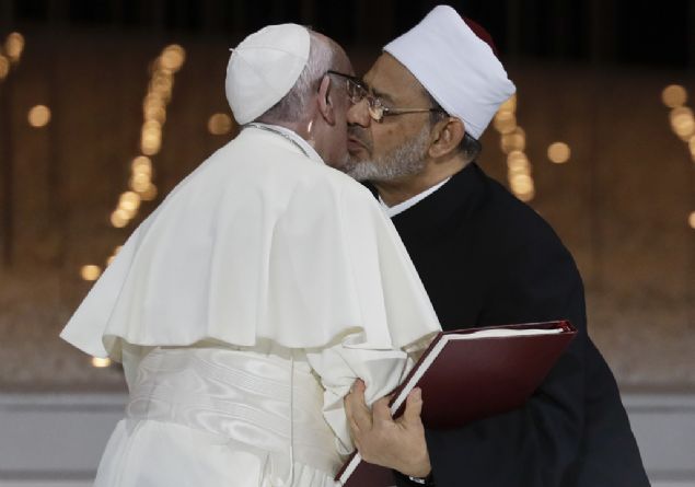 Dinlerarası sembolizm ve hoşgörü üzerine konuşan Papa Francis, İnsan Kardeşliği belgesine imza attı.