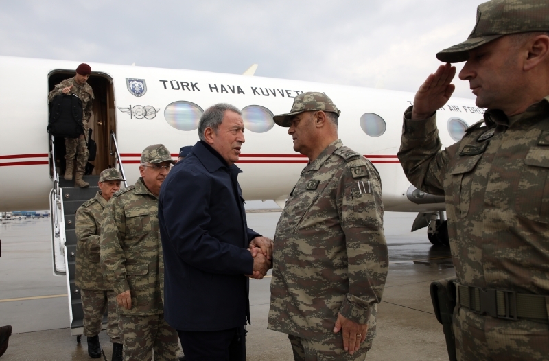 Hatay Havalimanı'nda 2. Ordu Komutanı Korgeneral Sinan Yayla ve diğer yetkililer tarafından karşılanan Akar ve komutanlar, Suriye sınır hattındaki birliklerde incelemelerde bulunuyor.