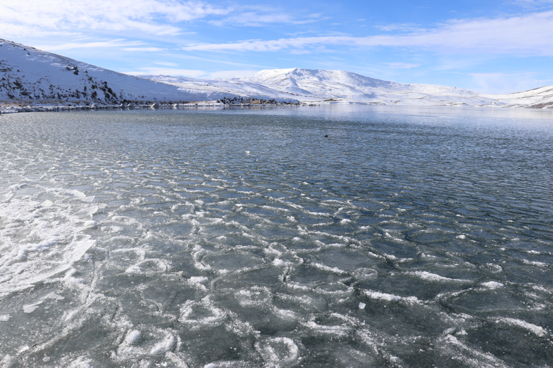 Yaz aylarında kamp ve piknik yapmak isteyenlerin tercih ettiği göl, bugünlerde dondurucu soğukların etkisiyle buzla kaplandı.
