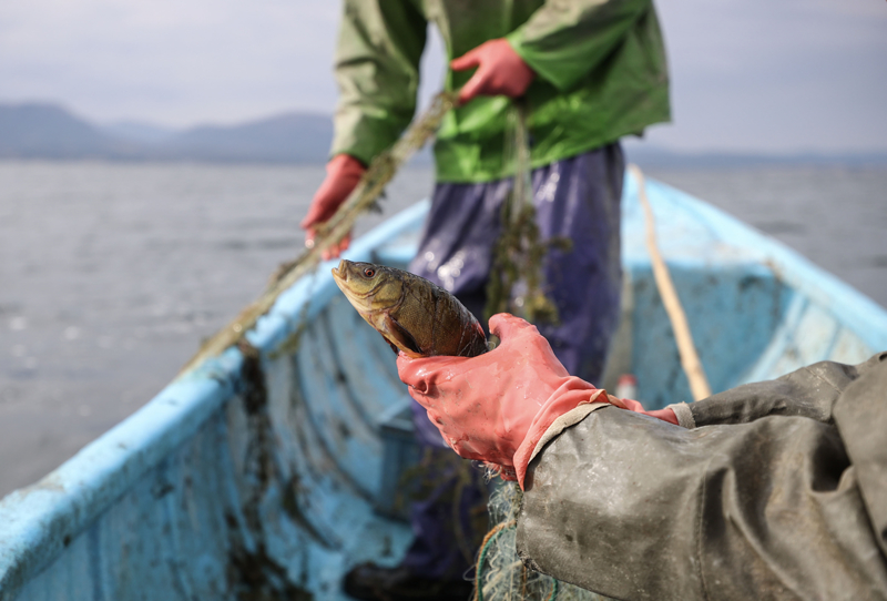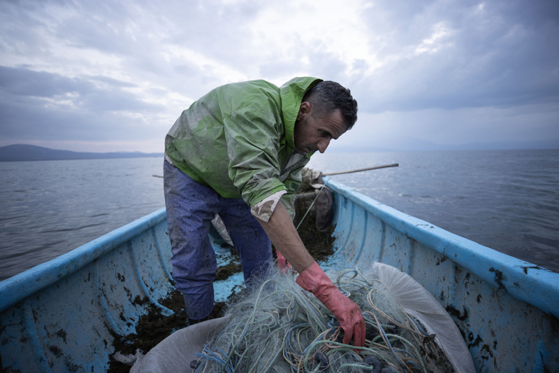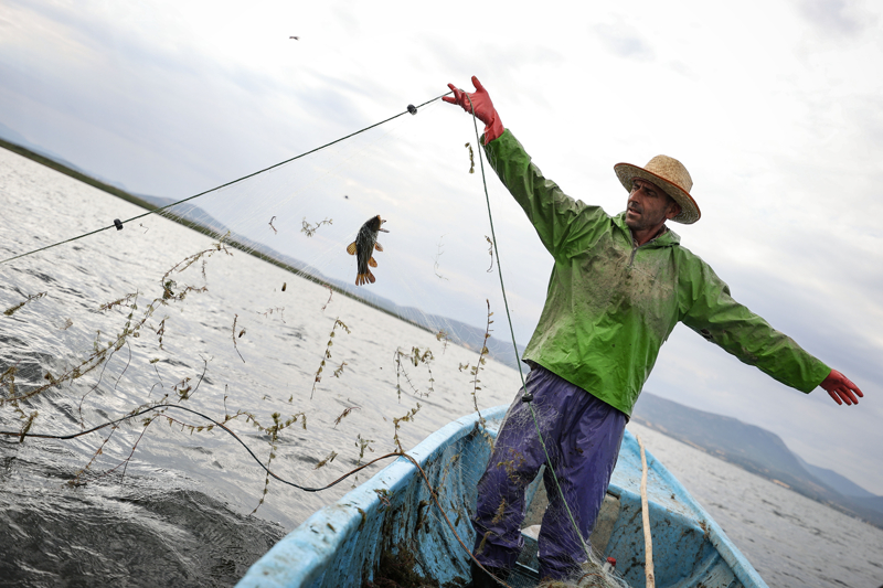 Türkiye'nin en önemli tatlı su balığı üretim merkezlerinden Beyşehir Gölü'nde balıkçılık yapan 46 yaşındaki İbrahim Erdoğan, her akşam attığı ağları sabahın erken saatlerinde topluyor. Geçimini av sezonunda tuttuğu balıkları satarak sağlayan ve genelde pullu sazan ve kadife sazanı avlayan Erdoğan, mesleğini 25 yıldır severek yapıyor.