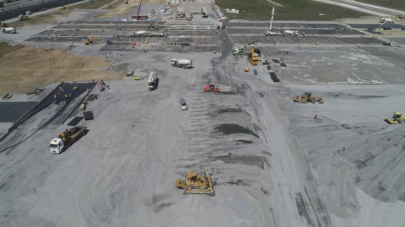 Havadan çekilen görüntülerde çok sayıda iş makinesi, hafriyat kamyonu ve işçinin alanda çalışma yaptığı görüldü.