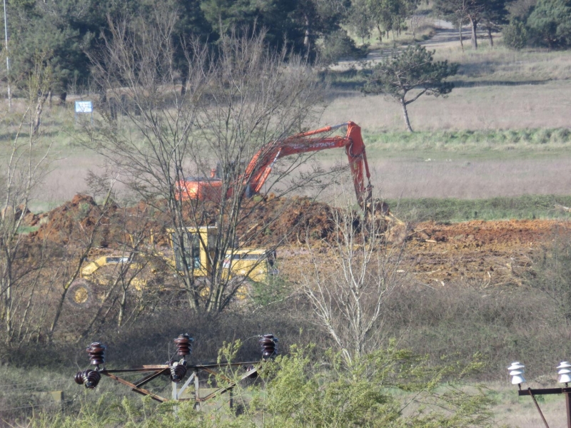 İş makineleri ve kamyonların hastane yapılacak alanda çalışmaları devam ediyor. (DHA)