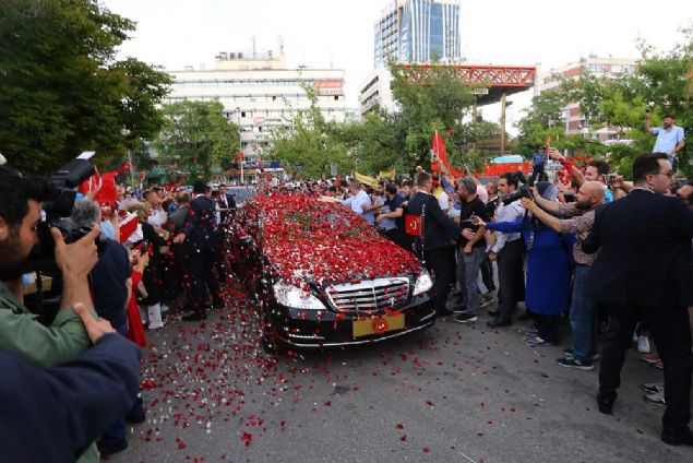Cumhurbaşkanlığı Hükümet Sistemi'nin ilk Cumhurbaşkanı Recep Tayyip Erdoğan, TBMM Genel Kurulunda yemin etmek üzere Meclise geldi. Vatandaşlar, Cumhurbaşkanı Erdoğan'ı çiçeklerle karşıladı.