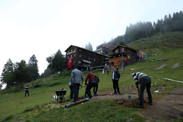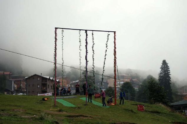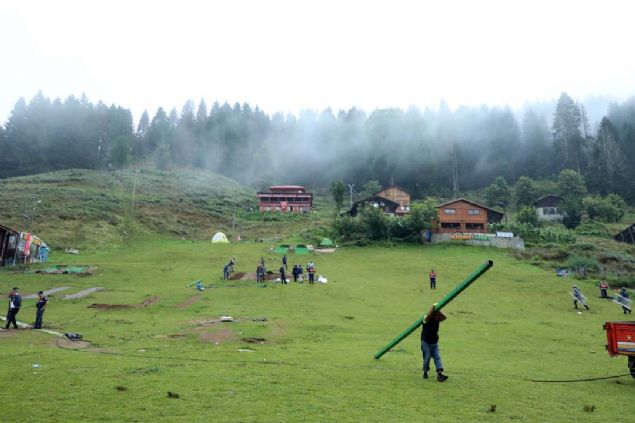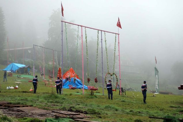 Rize'nin Çamlıhemşin ilçesindeki ünlü turizm merkezi Ayder Yaylası'nda kaçak yapılan salıncaklar kaldırıldı.