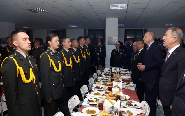 Son 35 yıldır, terör örgütlerine dağları yine siz dar ettiniz. Suriye'de Fırat Kalkanı ve Zeytin Dalı harekatlarında, İdlib'de, Irak'ın kuzeyinde dünyayı kendine hayran bırakan zaferlere sizler imza attınız. Şimdi de en yakın zamanda Münbiç'i ve Fırat'ın doğusunu terör örgütlerinden yine sizler temizleyeceksiniz. Bölücü terör örgütünün başına Kandil'i de Sincar'ı da sizler yıkacaksınız. Doğu Akdeniz ve Ege'deki haklarımıza giderek artan tecavüz teşebbüslerini sizler durduracaksınız. Sınırlarımızın her bir karışında ve sınır ötesinde ülkemize yönelen her tehdidi çelik gibi sinenizde sizler karşılamaya devam edeceksiniz. Çünkü siz, bu milletin tunç yüreği, çelik yumruğu, karanlığı delen gözü, geleceği kucaklayan kollarısınız. Siz kahramanlığın, atıldıktan sonra bir daha dönmemek olduğuna iman etmiş 'ölürsem şehit, kalırsam gazi olurum' inancıyla yola çıkmış Türk askerisiniz.'
