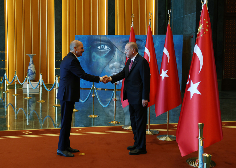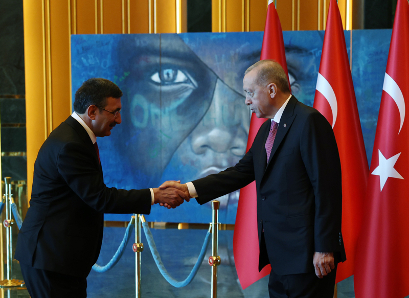Büyük Zafer'in 101'inci yılı kutlamaları kapsamında Anıtkabir'deki törene katılan Erdoğan, ardından Cumhurbaşkanlığı Külliyesi'ne geçti.