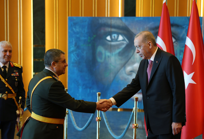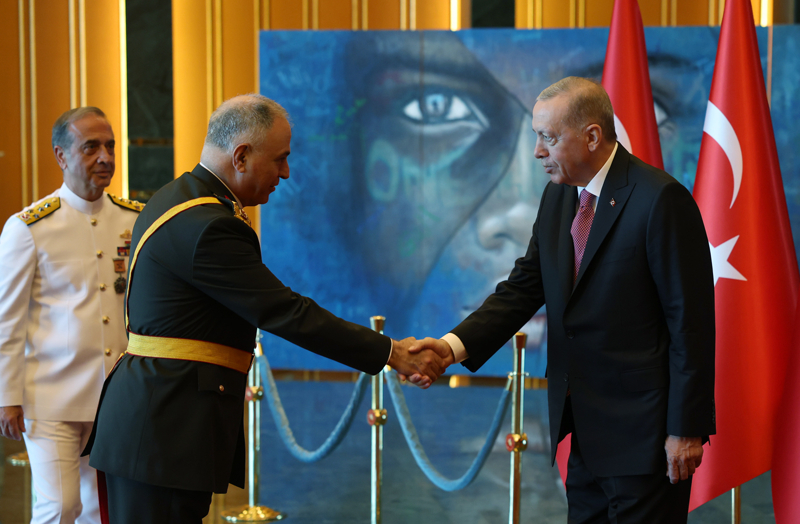 Cumhurbaşkanlığı Muhafız Alayı Bandosu'nun marşları seslendirdiği tören, başkentte görevli çeşitli rütbelerden askeri personelin Cumhurbaşkanı Erdoğan'a tebriklerini sunmasıyla sona erdi.