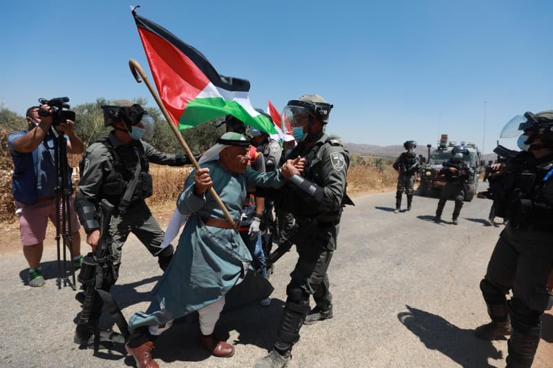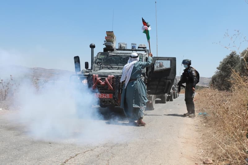 Batı Şeria'nın Ramallah kentindeki Turmus Ayya köyünde toplanan bir grup Filistinli, İsrail'in bölgede yeni Yahudi yerleşim birimleri inşası ve Ayrım Duvarı'na karşı gösteri düzenledi. İsrail güçleri, gösteriye müdahale etti.