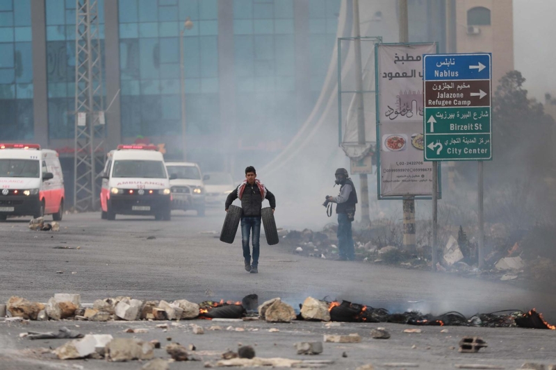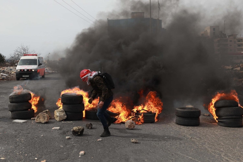 İsrail güvenlik güçlerinin gösteriye müdahalesi üzerine Filistinliler, lastik yakarak bölgedeki bazı yolları kapattı.