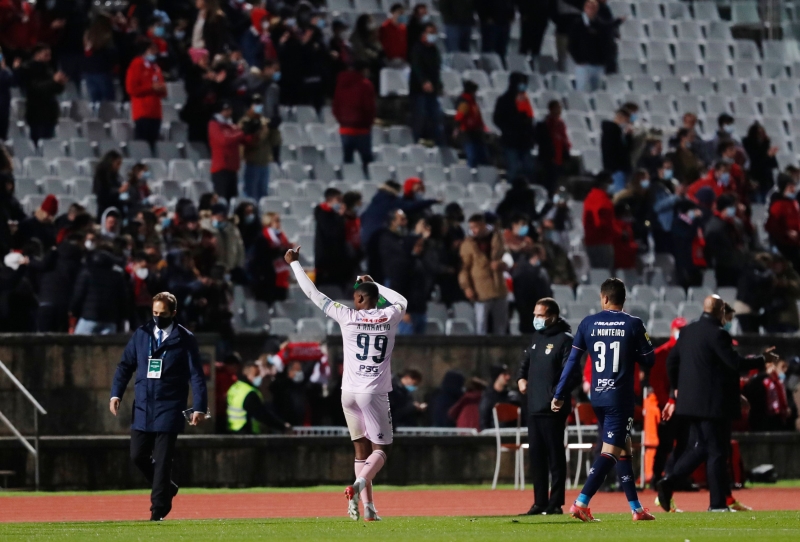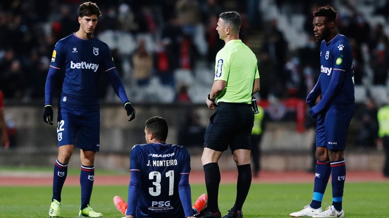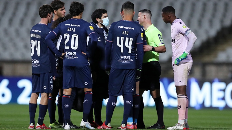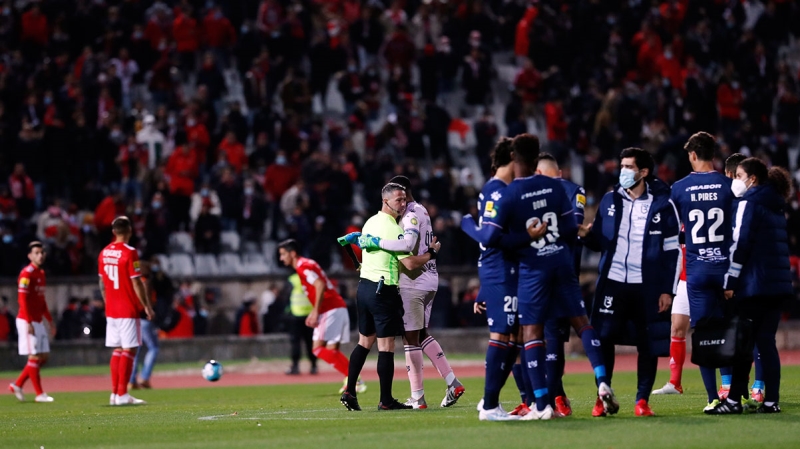 Ev sahibi ekip, 48. dakikada Alejandro Grimaldo'nun sakatlanmasıyla 6 kişi kalınca, hakem Manuel Mota karşılaşmayı bitirdi.