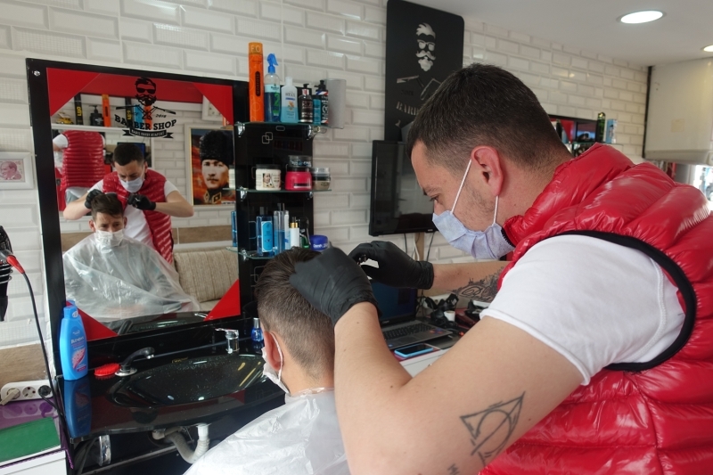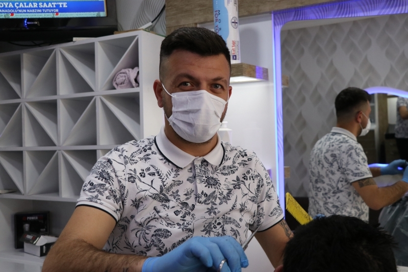 Kırklareli'nde berberlik yapan Barış Tıkılı da gerekli hijyen kurallarının ardından, 09.00 itibariyle faaliyetine başladı.