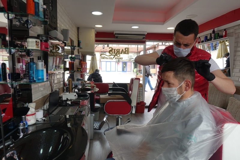 Kırklareli'nde berberler gerekli hijyen kurallarının ardından, 09.00 itibariyle faaliyetlerine başladı.